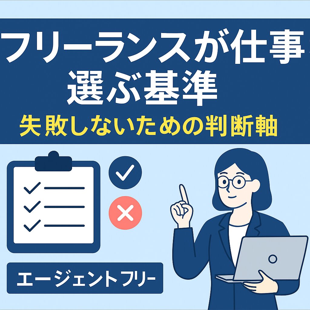 フリーランスにとって「どの仕事を受けるか」は、収入だけでなく働き方・精神的安定・スキルの伸び方まで左右する最重要テーマです。しかし、多くの人が 「単価が高い」「リモートだから」 といった短期的な条件だけで判断し、後になって「思っていた案件と違った……」と後悔してしまいます。