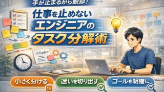 スキルアップ・技術ノウハウ 仕事を止めないエンジニアのタスク分解術 仕事が止まらないエンジニアは、タスクの分解が違います。手が止まる原因と、実務で使えるタスク分解の考え方・具体ステップを解説。生産性・評価を上げたいエンジニア必見。 2025.12.17 スキルアップ・技術ノウハウ経験者向け